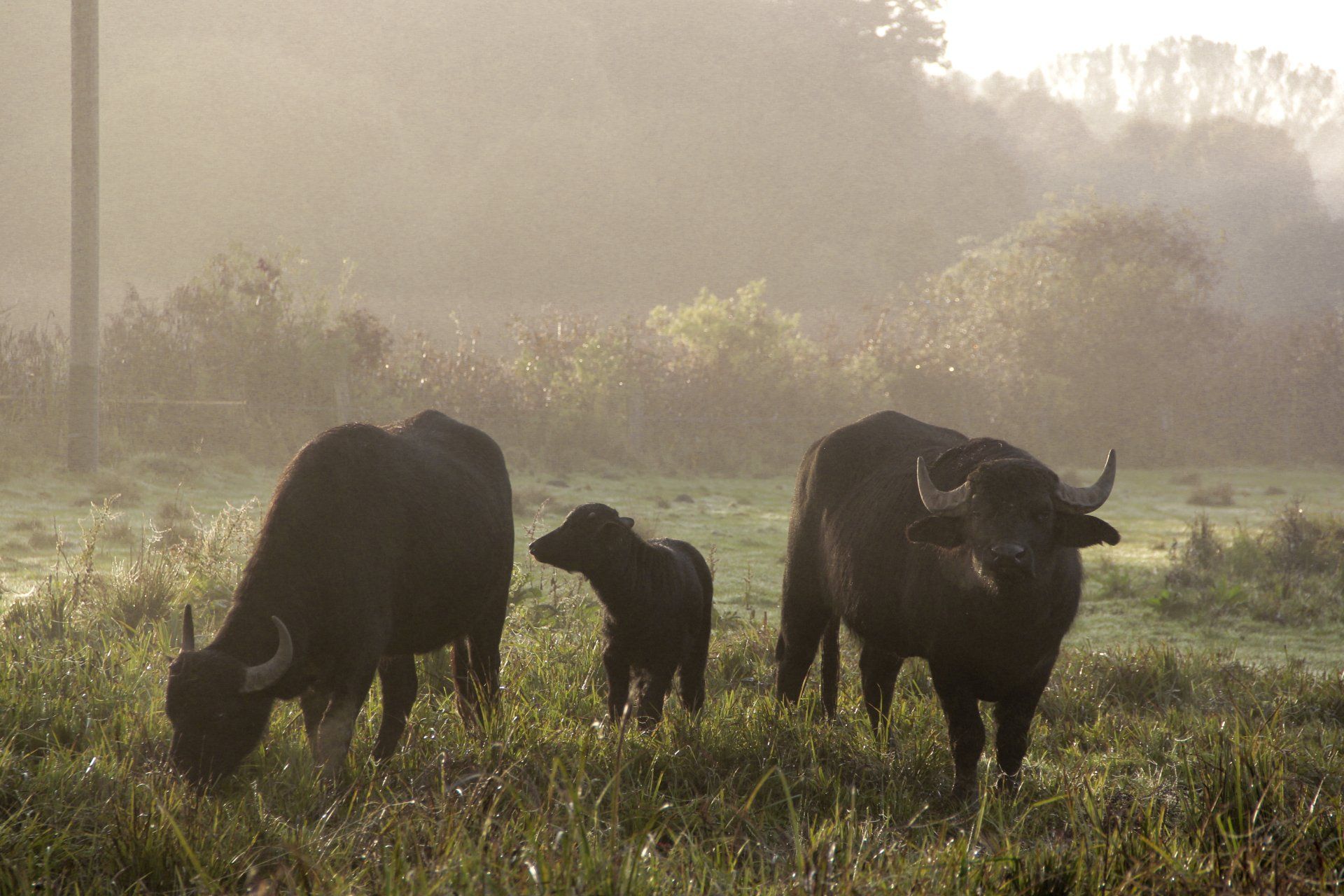 Vor einigen Jahren wurde zusätzlich noch eine kleine Wasserbüffelherde etabliert, die ganzjährig draußen bzw. in Offenställen untergebracht ist. Die Tiere werden nicht nur als Fleischlieferanten genutzt.